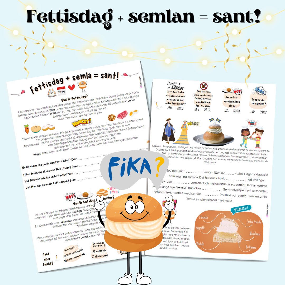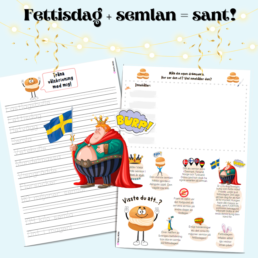 Visste du att år 1771 dog Sveriges konung på fettisdagen, av att ha ätit för mycket? Kungen åt hela fjorton hetvägg till efterrätt! Ett roligt material som beskriver både fettisdagen och semlan.