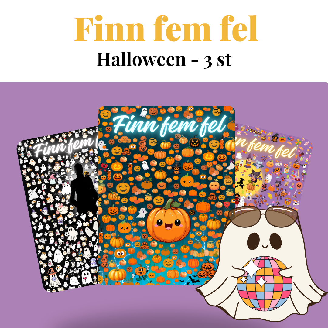 Denna pdf innehåller tre stycken finn fem fel med halloweentema.