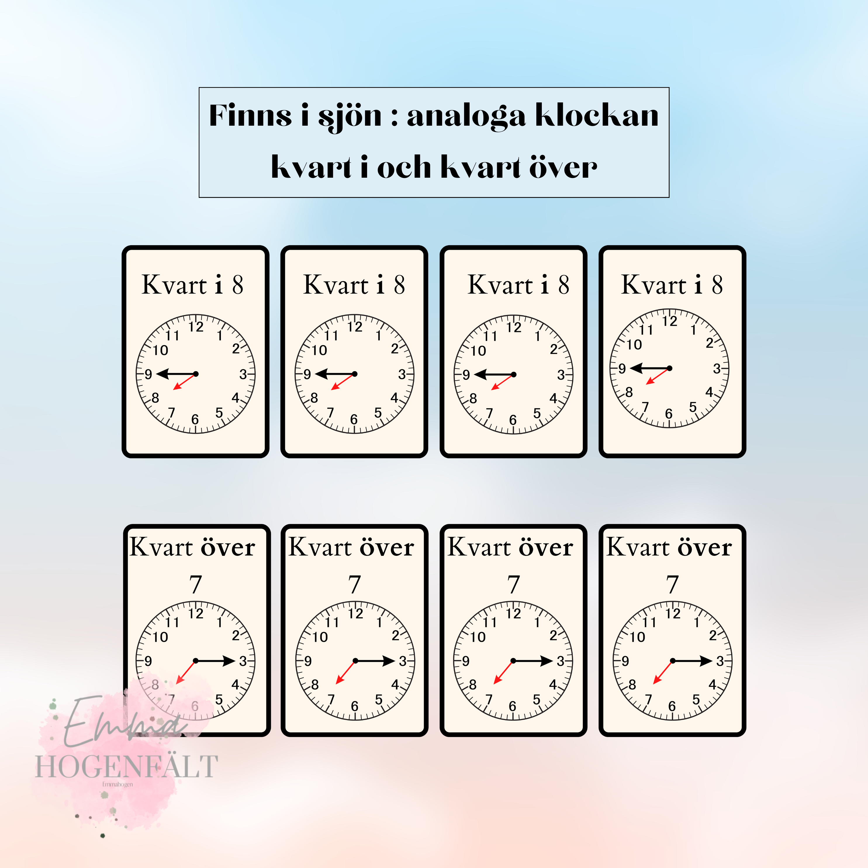 Finns i sjön – analoga klockan kvart i och kvart över.