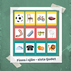 Materialet innehåller 23 par (med fyra kort till varje par). Eleverna får genom materialet möjlighet att träna sista ljudet på ett roligt och lekfullt sätt. Använd materialet som träningskort, para ihop dem, finns i sjön eller precis så som det passar bäst till för just din klass.