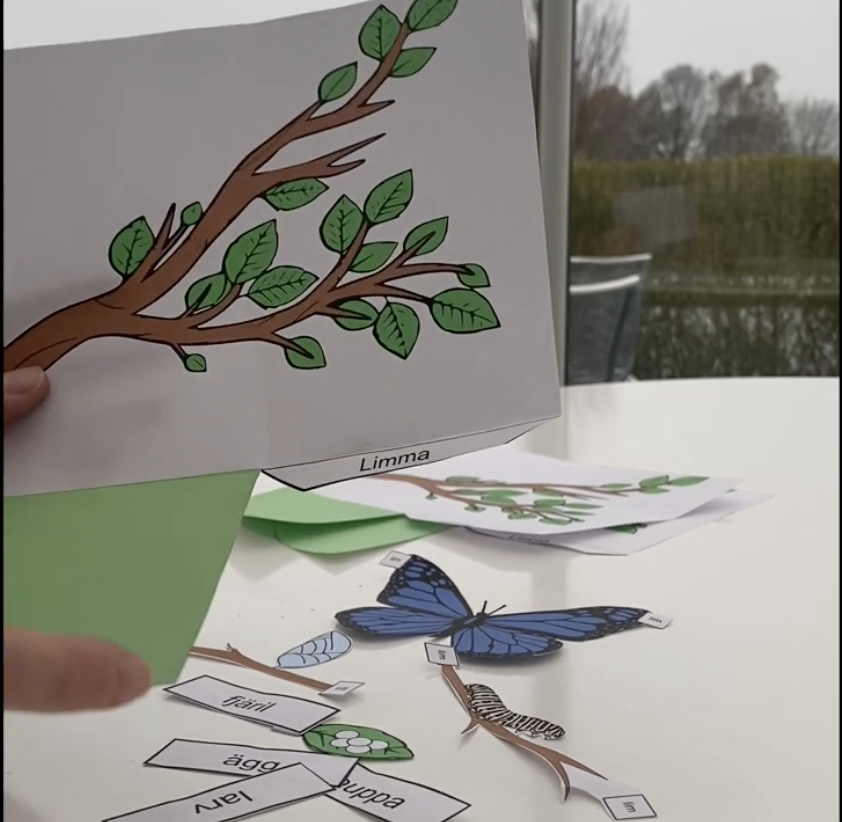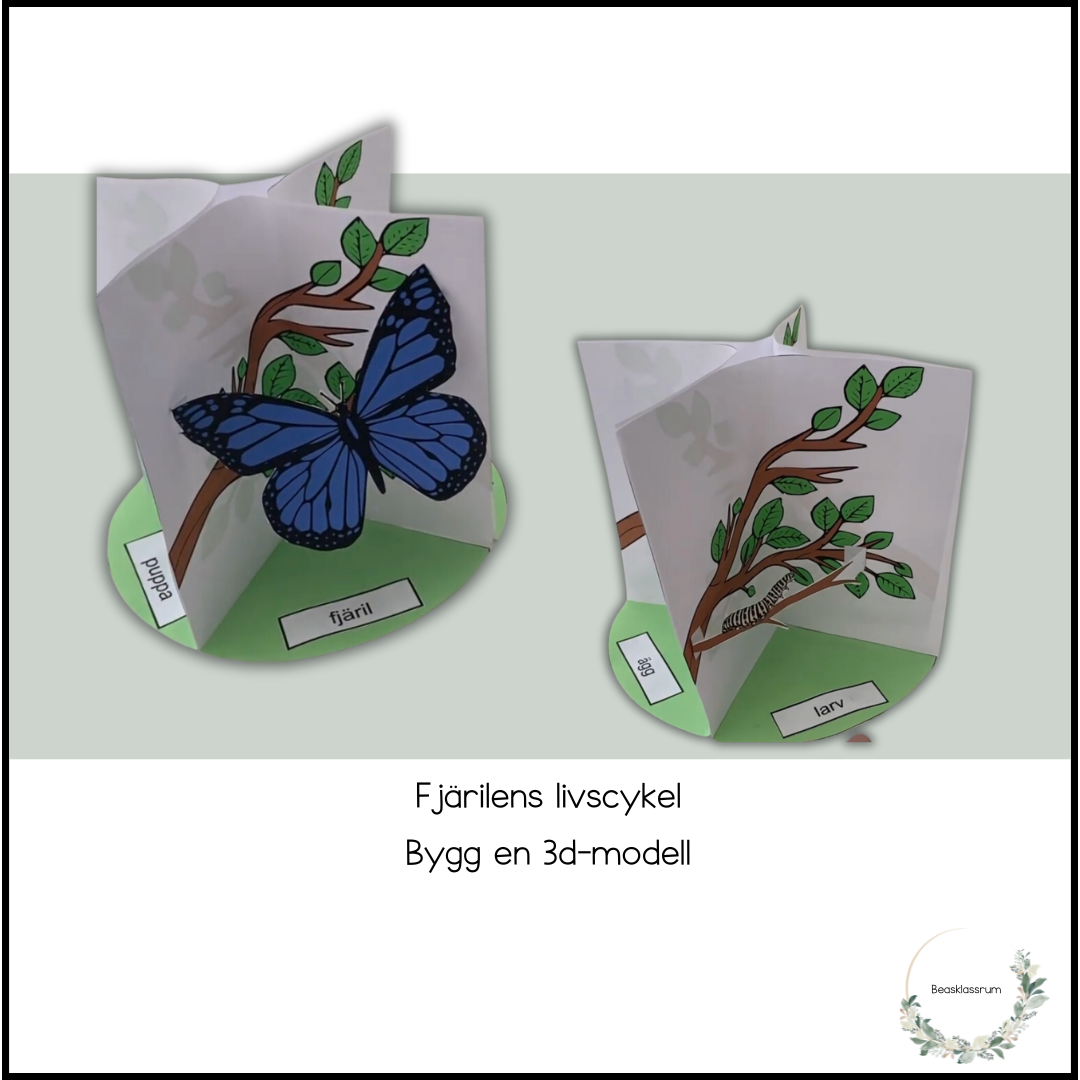 Materialet innehåller 5 sidor för att bygga modellen och placera ut fjärilens olika stadier.