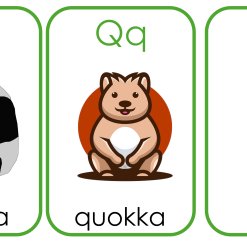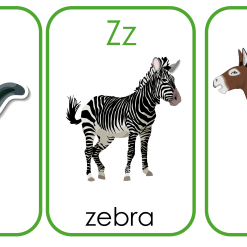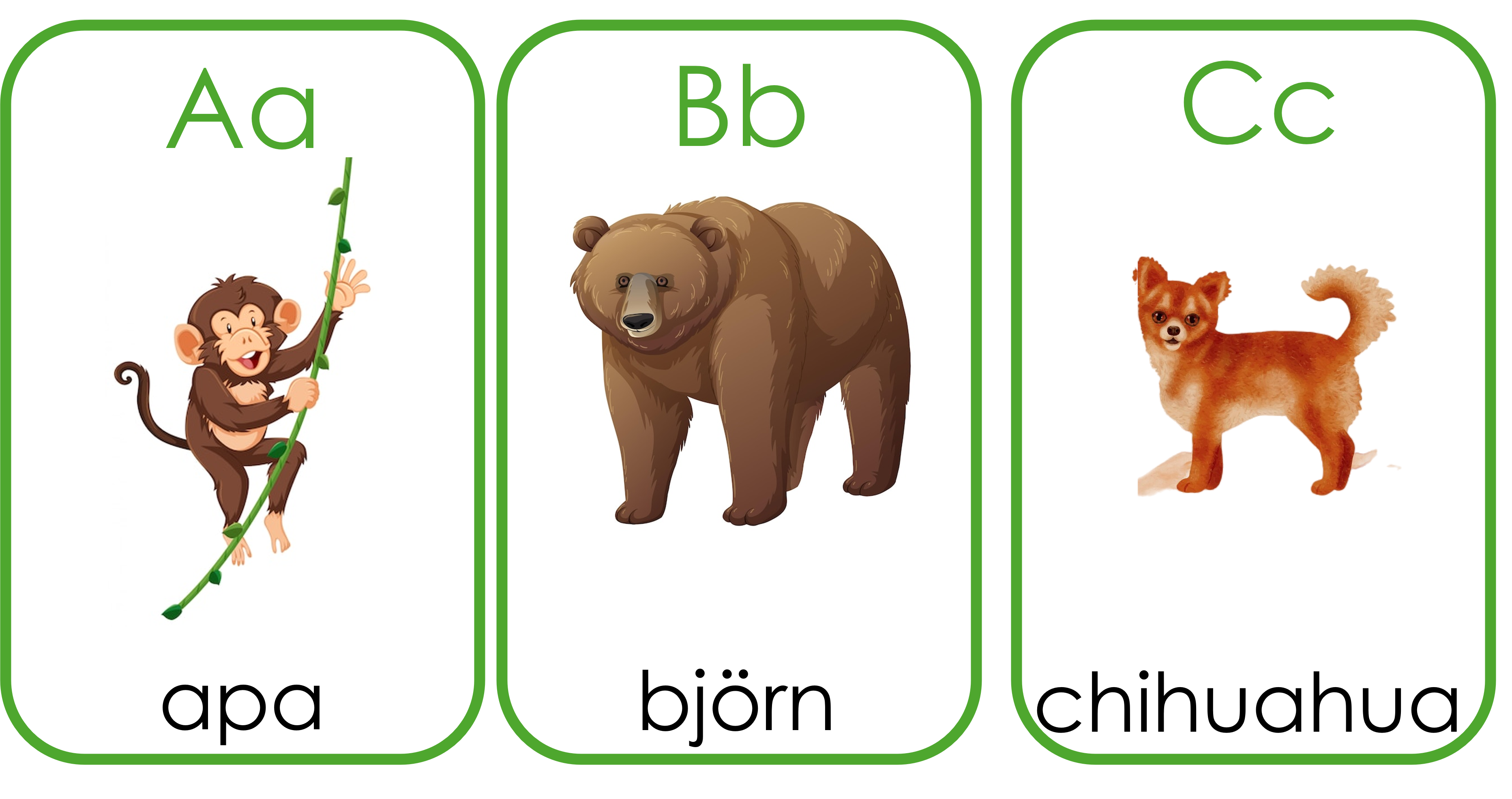 Materialet är flashcards med alfabetsbilder med temat djur.