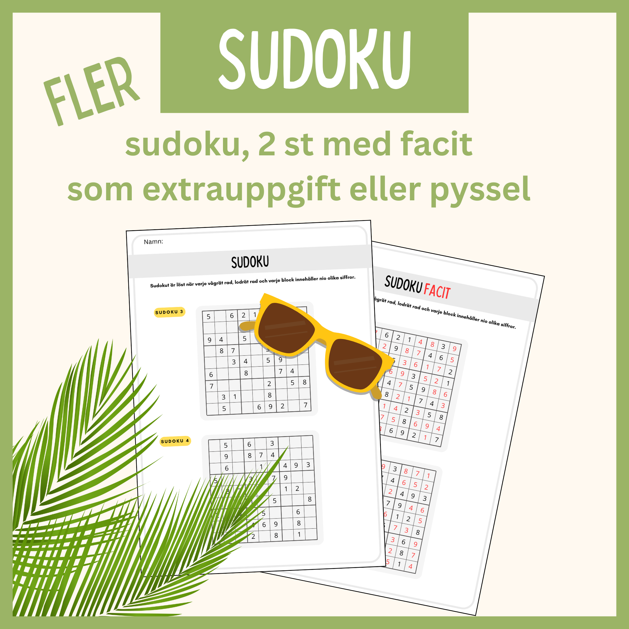 Fler sudokun, 2 st med facit, som extrauppgift eller pyssel