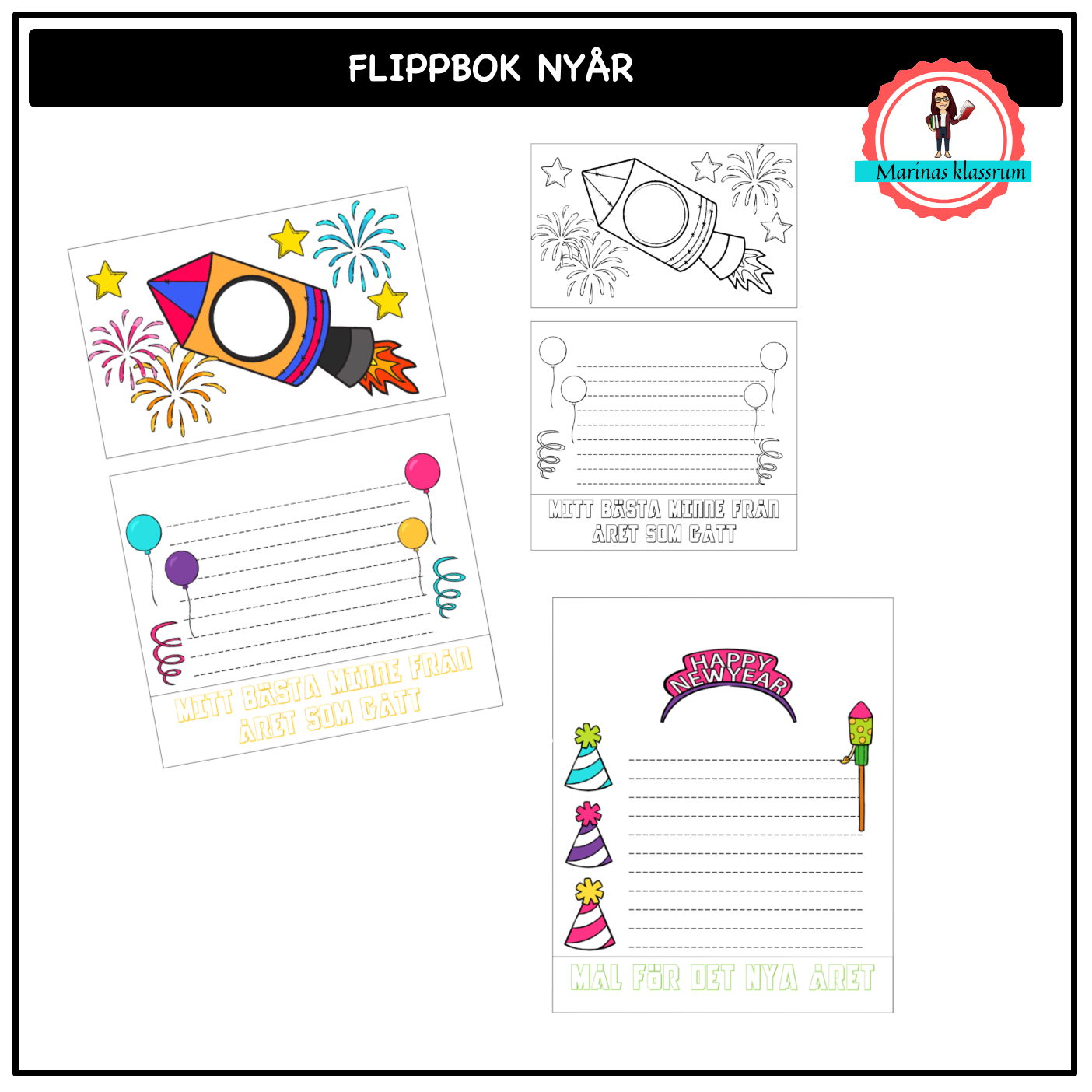 En liten blädderbok i färg eller svartvitt där eleverna får skriv ner sina minnen från året som gått och sätta upp mål för det nya året. Materialet finns både på svenska och engelska.