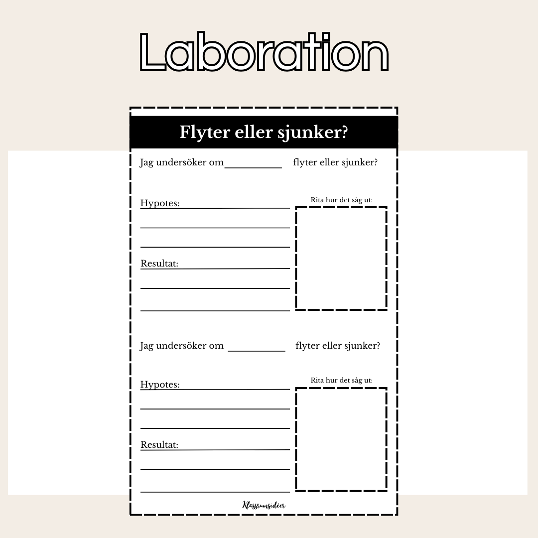 - Ett arbetsblad där eleverna själva kan undersöka olika föremåls densitet.