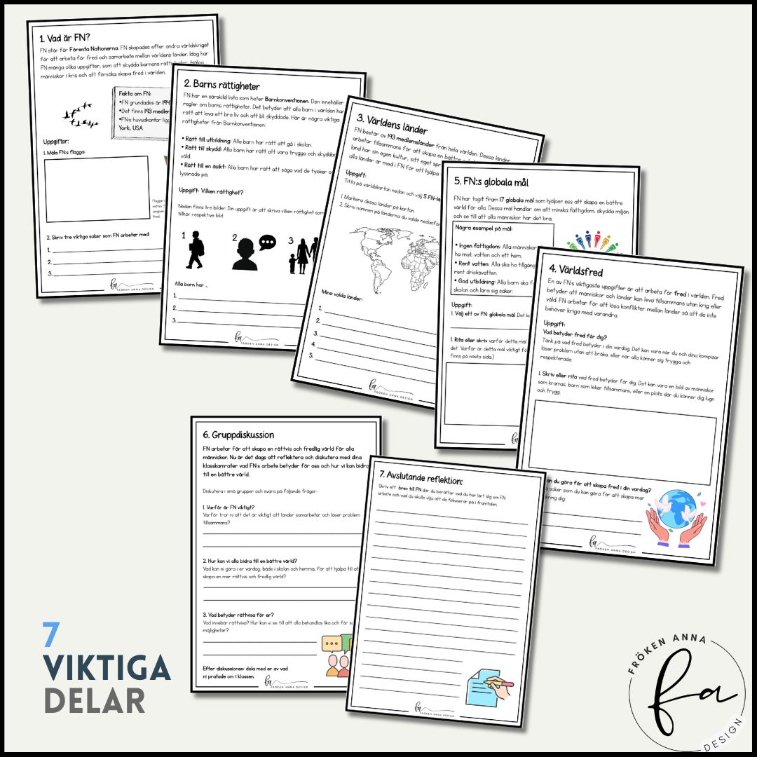 Materialet är perfekt för FN-dagen och hjälper till att skapa medvetenhet om FN: arbete och hur vi tillsammans kan göra skillnad. Låt eleverna tänka, reflektera och uttrycka sina egna tankar om världsfred och barns rättigheter.