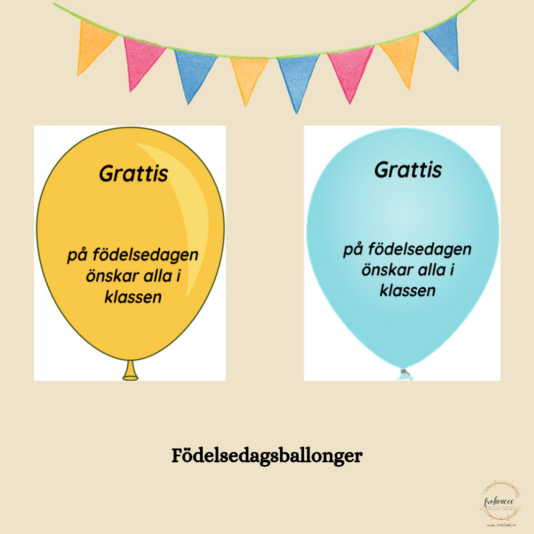 Innehåller 5 st ballonger i olika färger att själv fylla i namn.