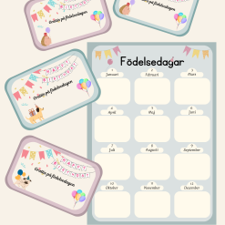 Födelsedagskort och en plansch för att samla klassen födelsedagar på över året. 16 olika födelsedagskort att välja eller blanda mellan. På korten kan man förhand skriva in elevernas namn och datum.