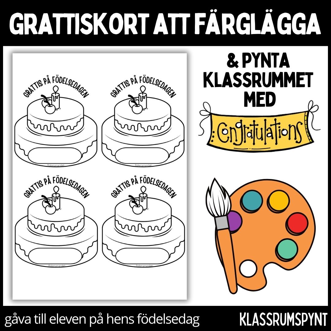 Födelsedagskort – färglägg, dekorera klassrummet, gåva vid födelsedag – 12