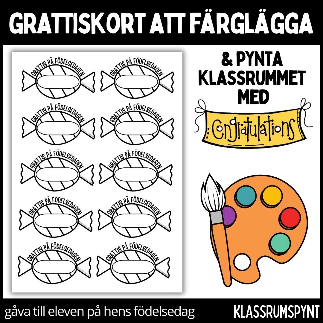 Låt eleverna färglägga sitt egna födelsedagskort, häng sedan upp elevernas kort i klassrummet och ge eleverna vid deras födelsedag. Perfekt uppstartsaktivitet, klassrumspynt och present.