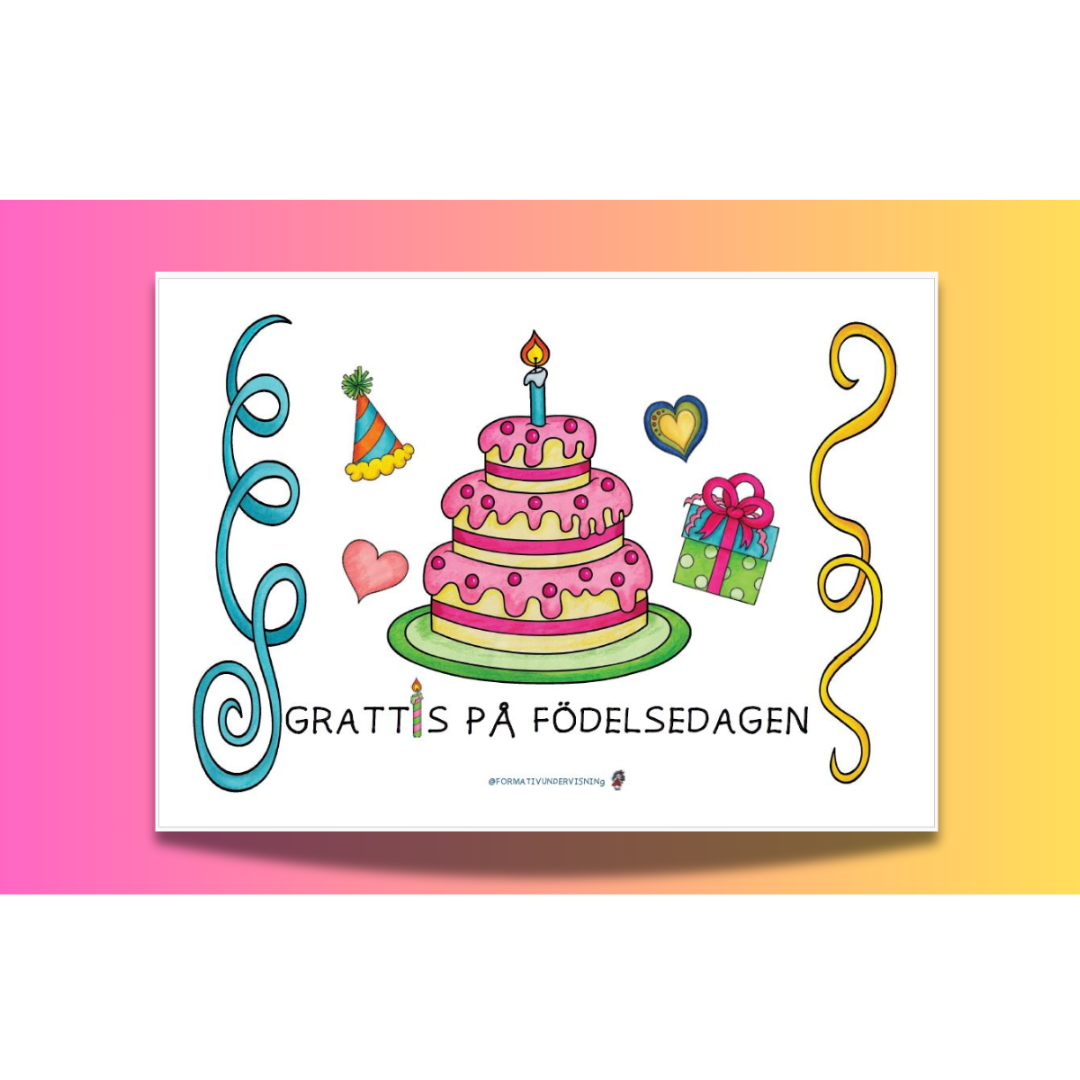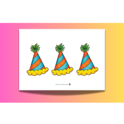 Skriv in elevernas födelsedagsdatum på hattarna, laminera och fäst på väggen eller som det behagar dig.