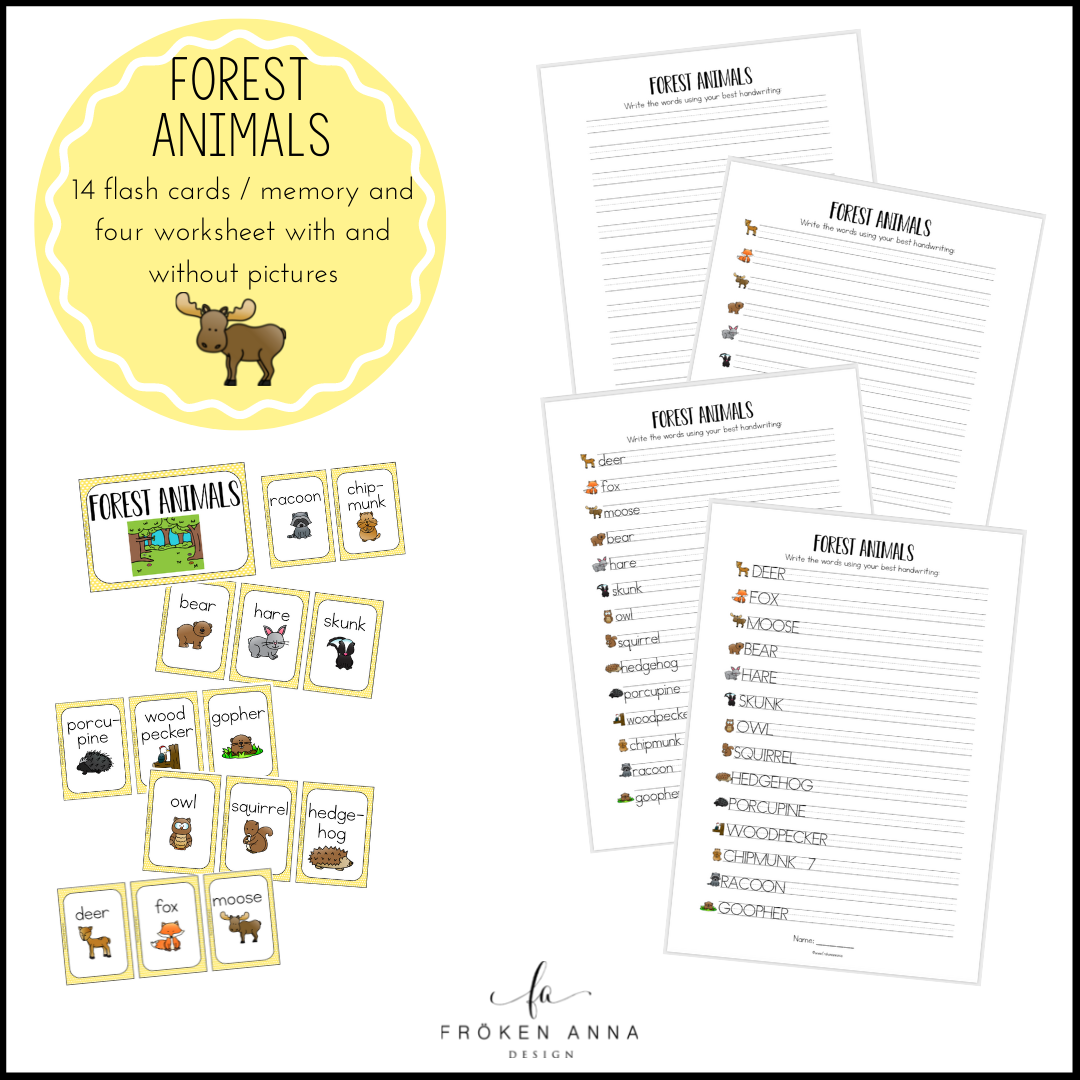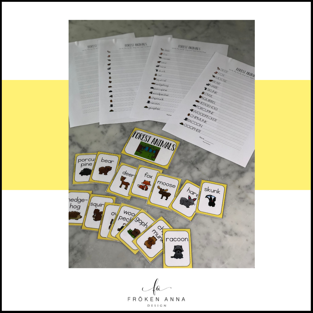 I detta set ingår 14 ordkort med bild och ord på engelska (Dessa kan även användas som memory om ni skriver ut dubbletter) samt fyra arbetsblad: i versaler, gemener samt med och utan text.
