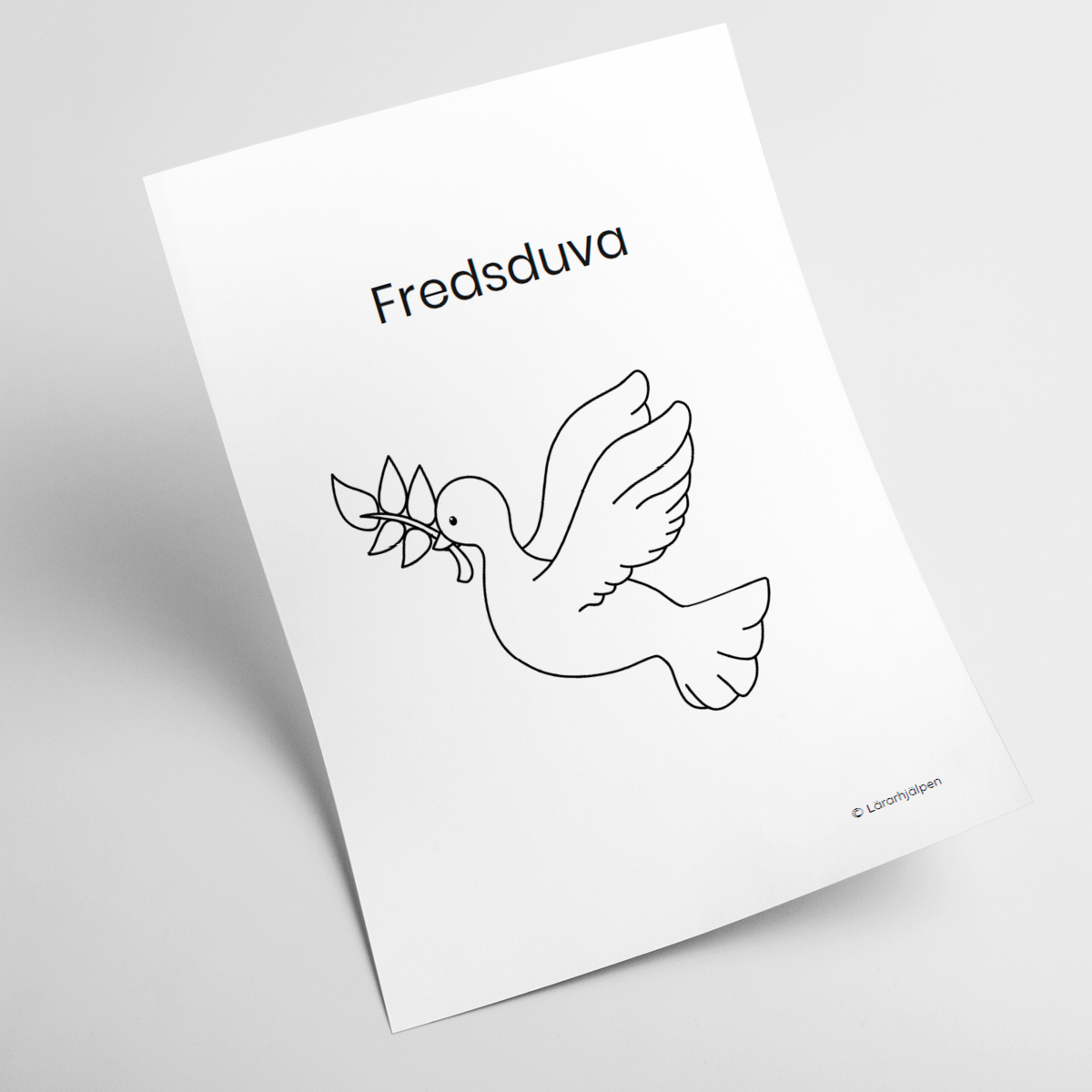 Letar du efter en Fredsduva att använda i samband med FN-arbetet? Då har Lärarhjälpen flera olika utföranden att välja på. Den här varianten har en något svår olivkvist för elever som är ovana att klippa!
