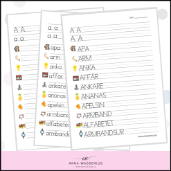 Fröken Annas bokstavsmaterial är ett omfattande arbetsmaterial till alfabetets 29 bokstäver. Till varje bokstav medföljer 10 ordkort med bilder (med undantag för bokstaven X och Z), tre arbetsblad med orden i versaler, gemener och med endast bildstöd samt en skylt till klassrummet om veckans aktuella bokstav. Totalt ingår 285 ordkort och 86 arbetsblad som lärs ut under 29 veckor. Lärarinformation och förslag på lektionsupplägg ingår också.
