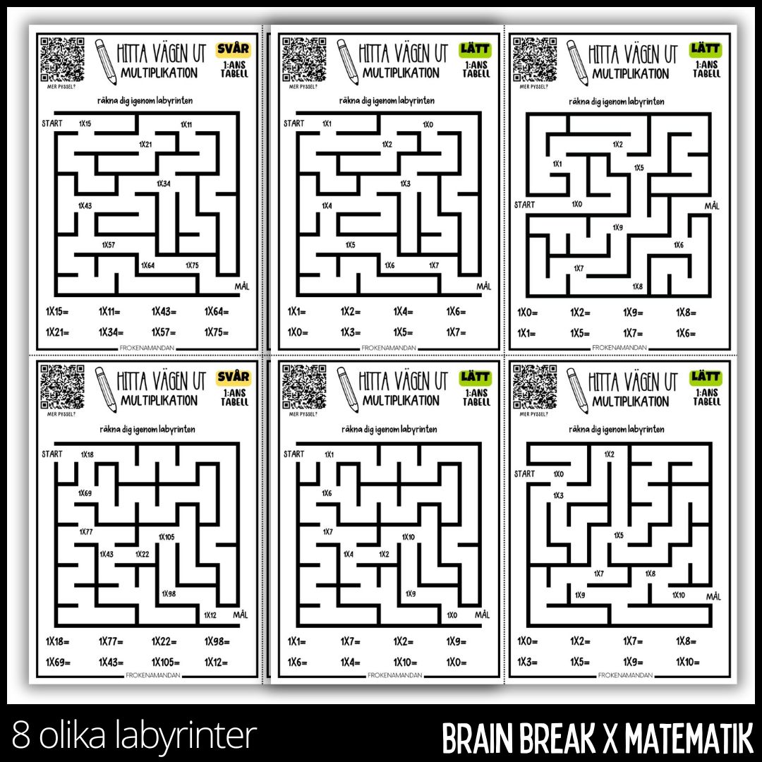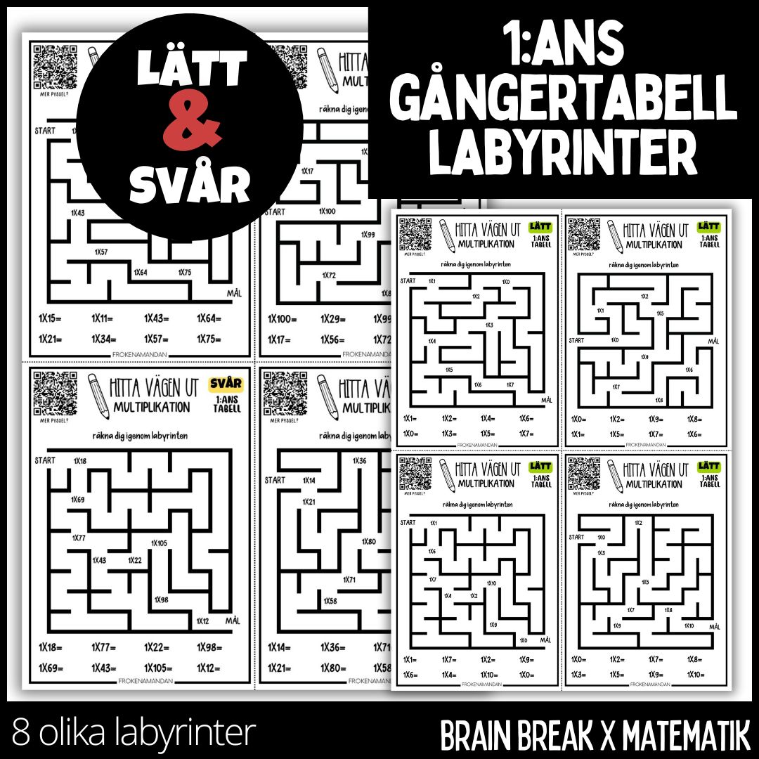 1:ans gångertabell – labyrinter – brain breaks – matematik