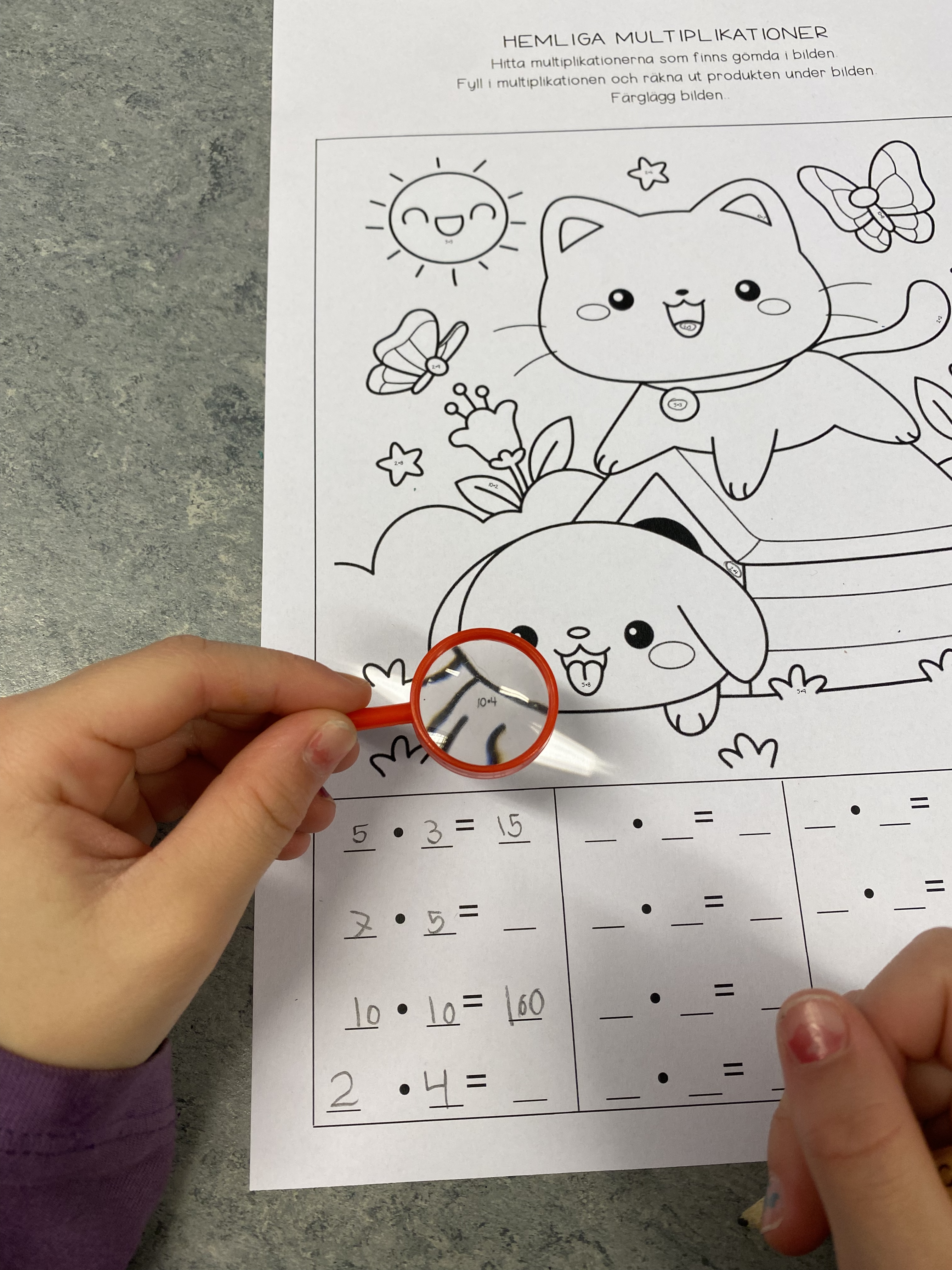När alla multiplikationer är hittade får eleverna färglägga bilden.