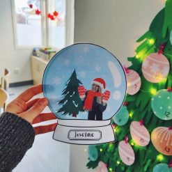 Ta kort på eleverna (eller låt dem göra det själva) och skriv ut, skriv ut önskad mall + accessoarer i lämplig storlek (eller låt eleverna göra egna) och börja klippa och klistra för att slutligen laminera! Slutresultatet blir en festlig snöglob som barnen kan ge bort i julklapp.
