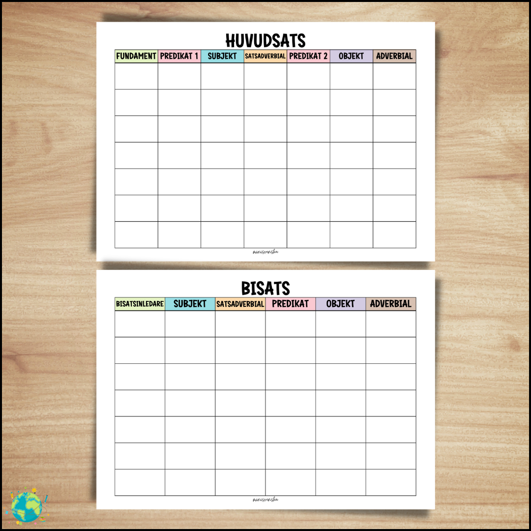 Satsscheman underlättar för eleverna när de ska arbeta med huvudsatser och bisatser.