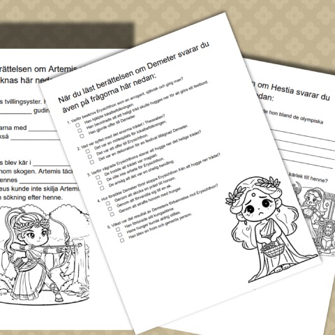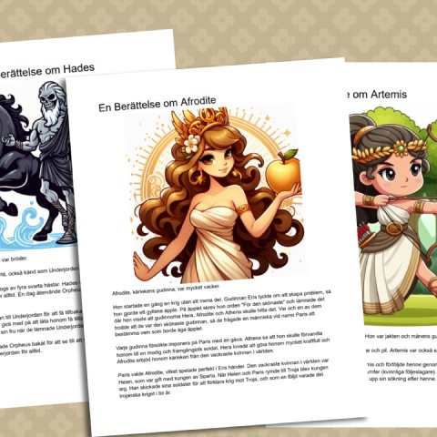 30 sidor med berättelser, roliga uppgifter samt lite pyssel om de grekiska gudarna och gudinnorna.