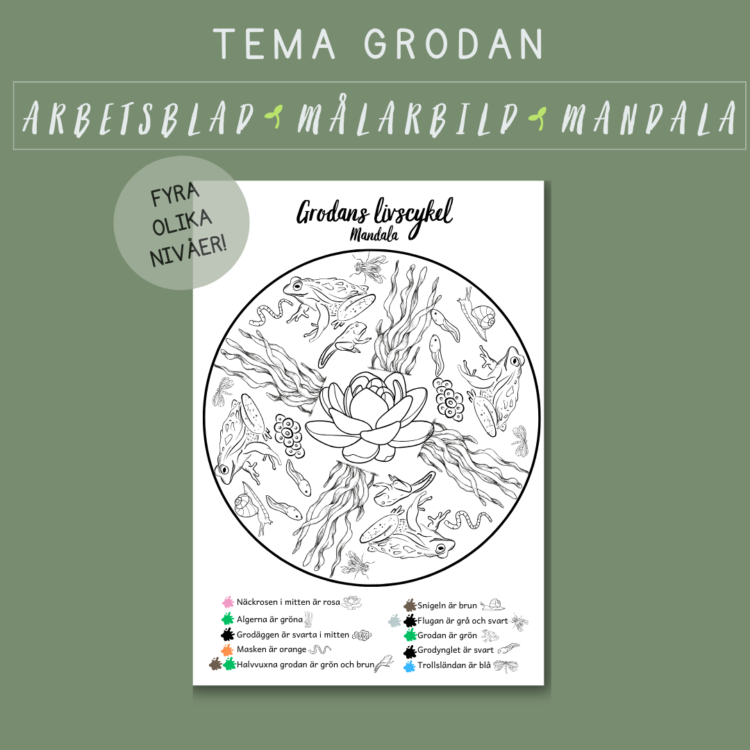 Läs och färglägg mandalan om grodans livscykel. Passar även yngre barn/elever då det finns bildstöd.