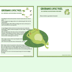Arbetshäftet innehåller målarbild, VÖL, fakta om grodor, grodanslivscykel, ordlista och ordgömma.