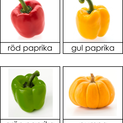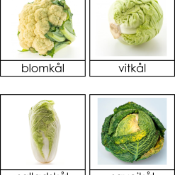 Materialet är ett Montessorimaterial som kallas 3 dels kort. Temat är grönsaker.