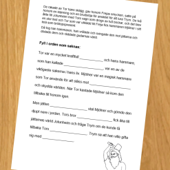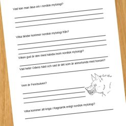 10 sidor om Nordisk Mytologi för elever att arbeta med individuellt eller i grupp.