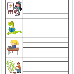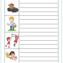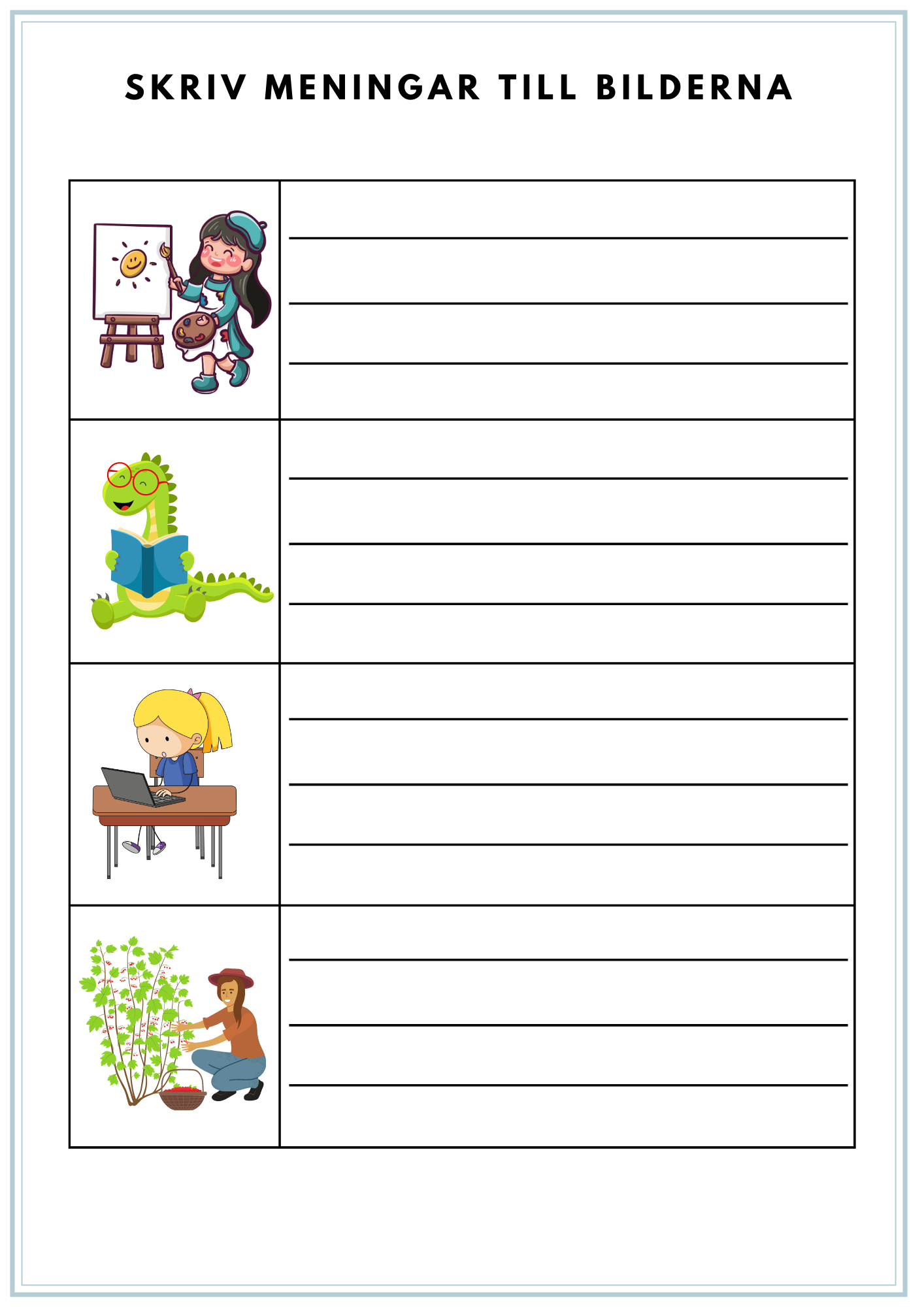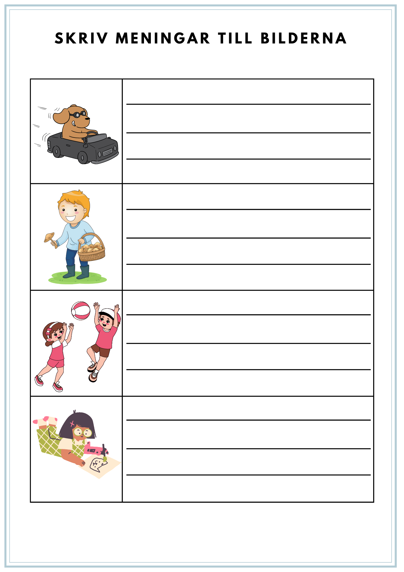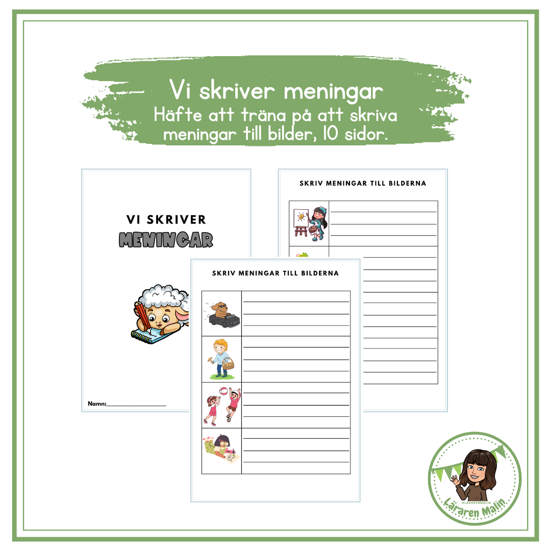 Ett häfte med totalt 10 sidor arbete där eleverna skriver meningar till olika bilder.