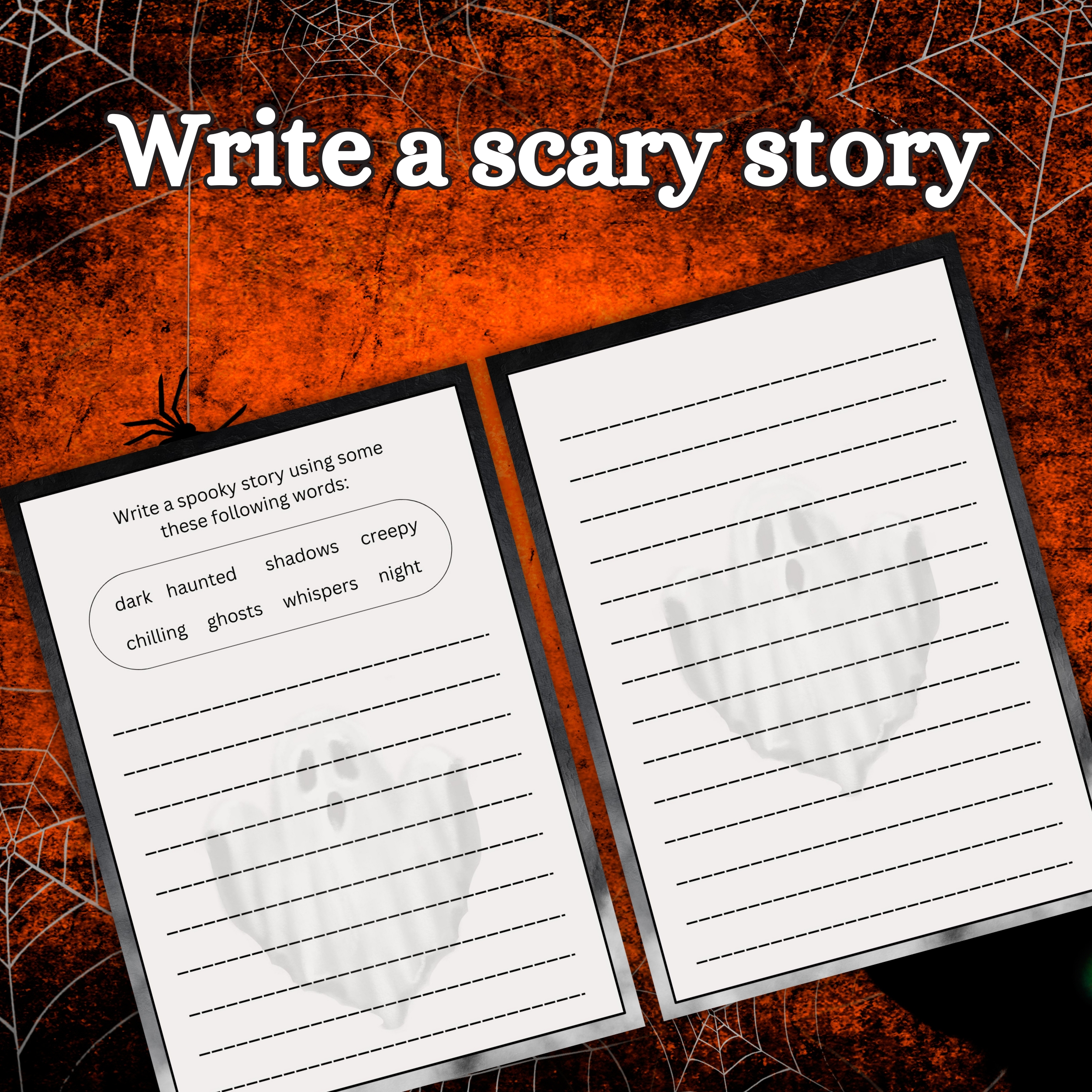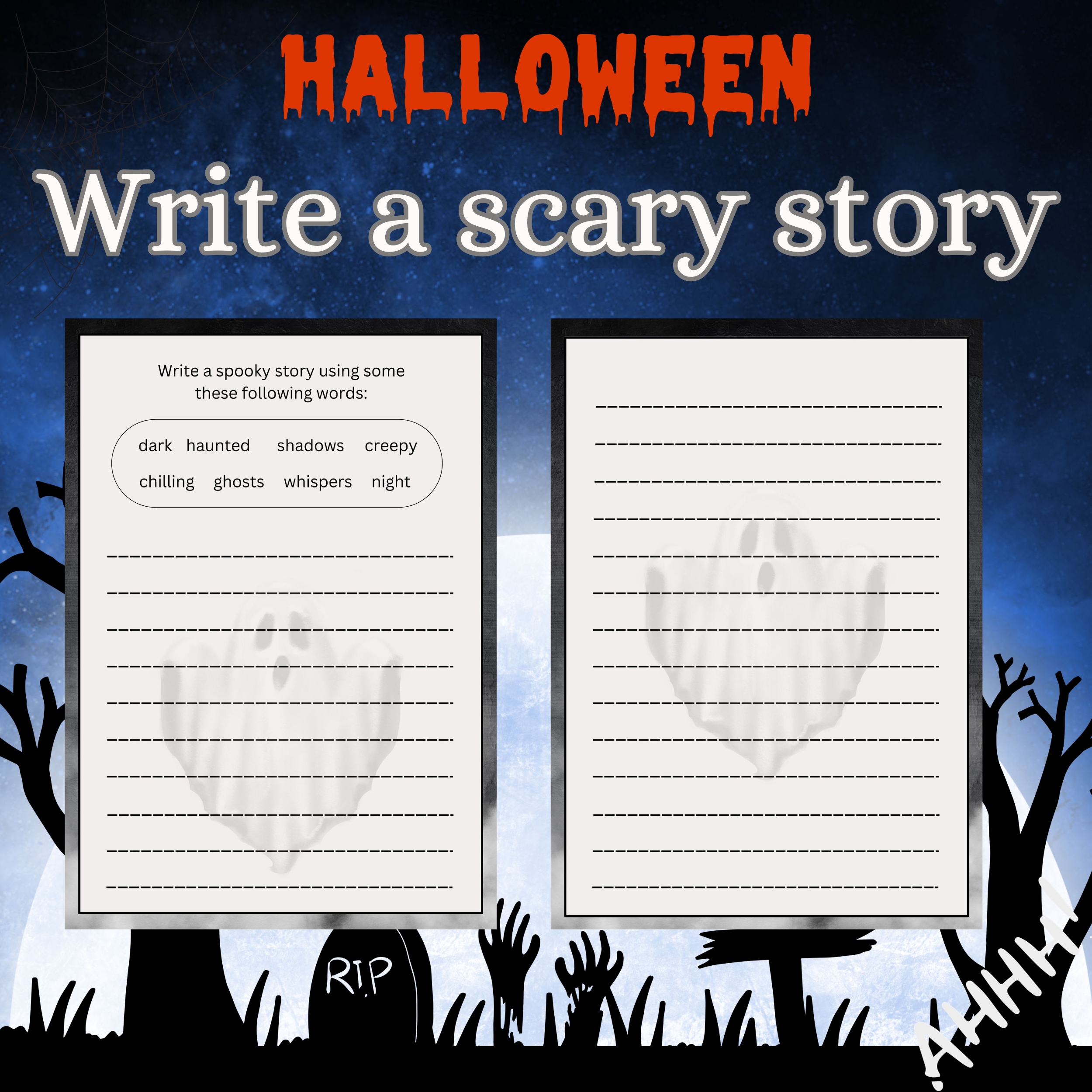 Eleverna kan skriva en läskig saga på engelska med hjälp av olika stödord.