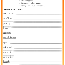 Halloween-häfte för åk 2-3 med blandade uppgifter i matte, svenska och engelska. Totalt 18 sidor.