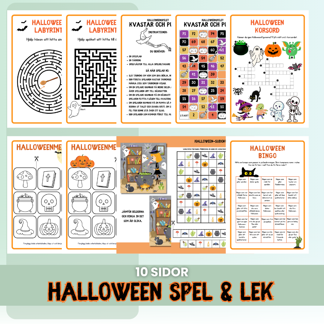 10 roliga och kluriga arbetsblad med spel och lekar att använda under Halloweensäsongen.