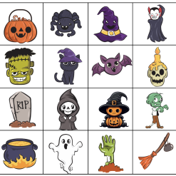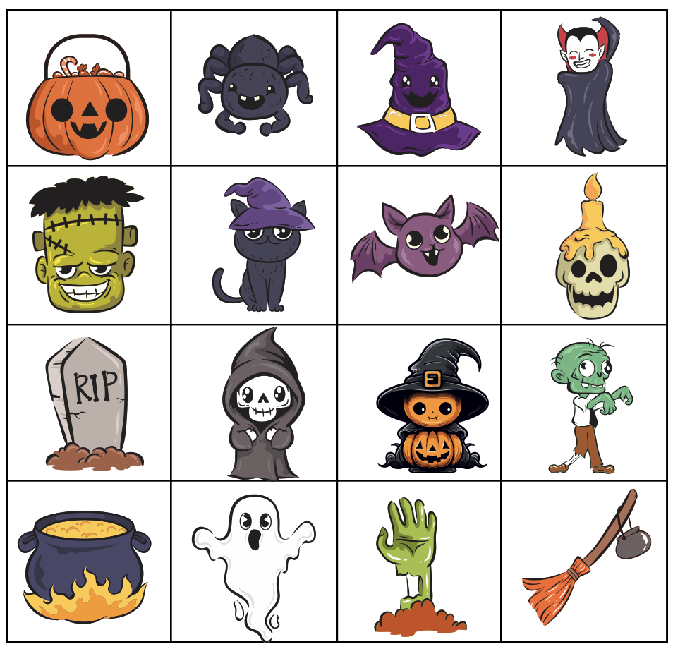 Möjlighet att antingen klippa ut spelkorten och dra eller använda den interaktiva bildpresentationen där du klickar på en bricka åt gången för att se spelkorten.