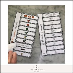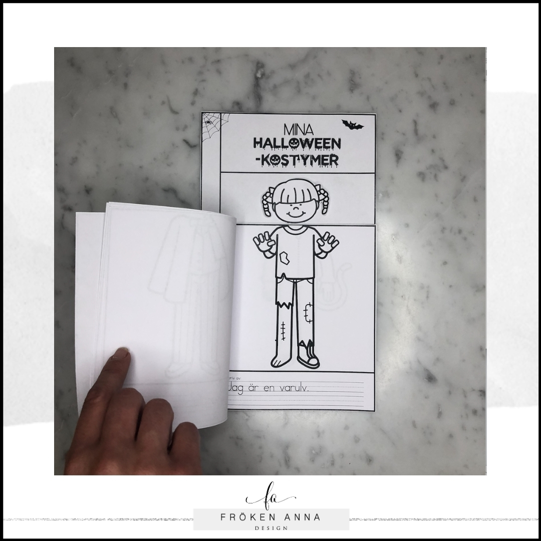 Min lilla Halloweenbok: Eleverna först finmotorisk träning genom att själva klippa ut sidorna till boken och disponera i vilken ordning de vill ha sidorna. Därefter får de arbeta med olika moment som innefattar både välskrivning, följa instruktion, beskrivande text, svara på frågor, räkna och färglägga. Totalt består materialet av 12 boksidor ikl. framsida.