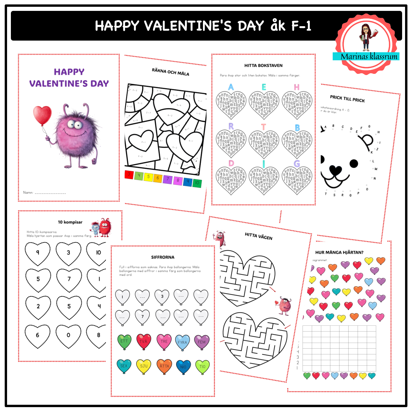 Ett arbetshäfte med blandade uppgifter i svenska och matematik med ett kärlekstema med söta kärleksmonster. Innehåller 12 arbetssidor + en framsida.