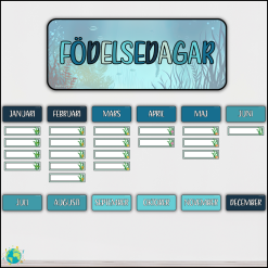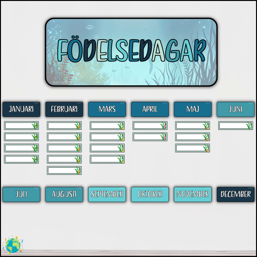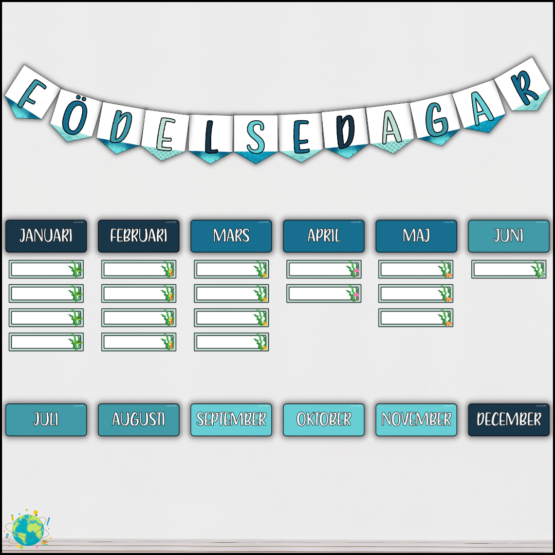 Sätt upp elevernas födelsedagar på väggen med havet-tema.