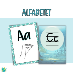 - Alfabetet med ritade tecken och med stödlinjer