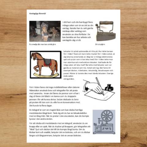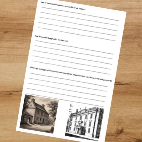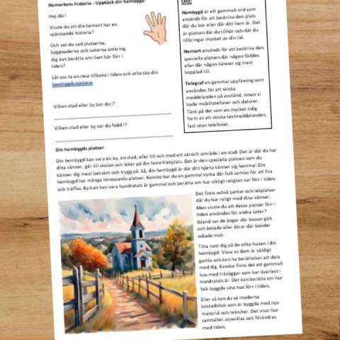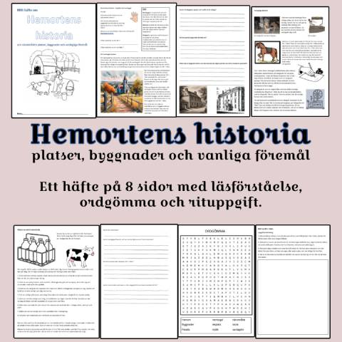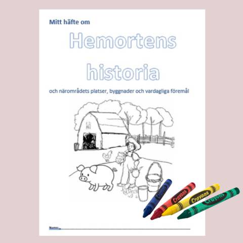 Ett häfte på 8 sidor som tar upp hemortens historia och närområdets platser, byggnader och vardagliga föremål. Eleverna får läsa en text och svara på frågor. Det finns även en ordgömma och en bilduppgift.