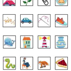 Ge dina barn en rolig och lärorik upplevelse med den här leken! Klipp ut remsorna och korten och laminera dem. Sprid sedan ut korten med bilder synliga på bordet. Lägg remsorna med orden upp och ner i en hög. Barnen turas om att ta en remsa och läser orden högt. Efter det letar de efter rätt bild. När bilden hittas, placera den bredvid ordet för att stärka sambandet mellan ord och bild. Avsluta sedan med en repetition av alla ord för att förstärka inlärningen.