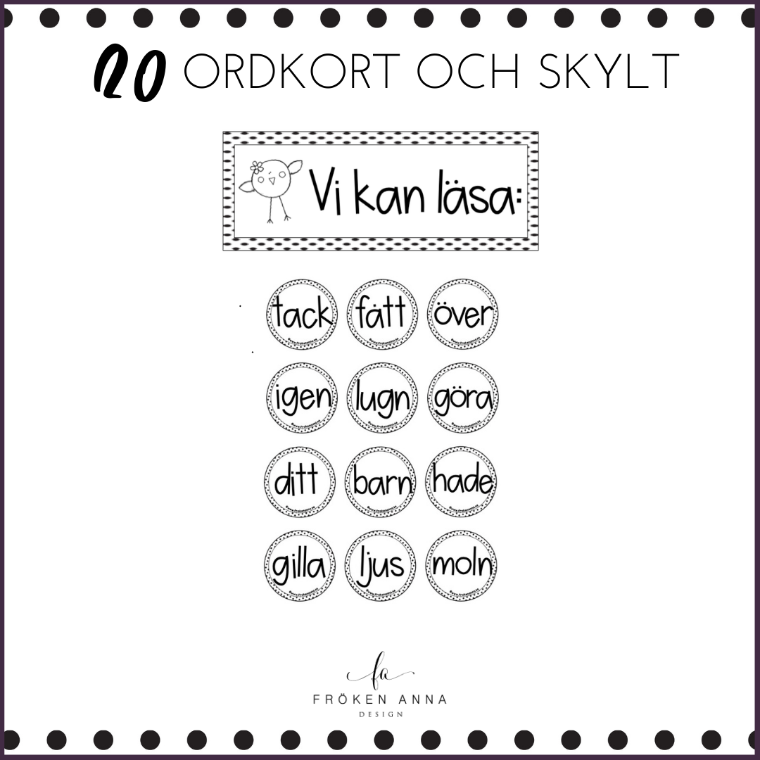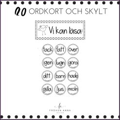 - 20 runda ordkort och klassrumsskylt