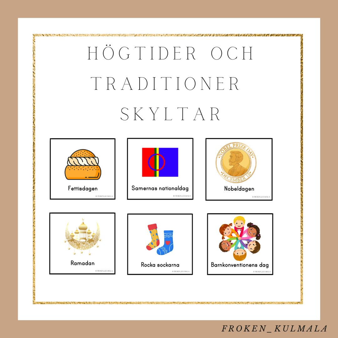 Synliggör traditioner och högtider genom att sätta upp poster med bildstöd vid samma månad som dagen firas i.