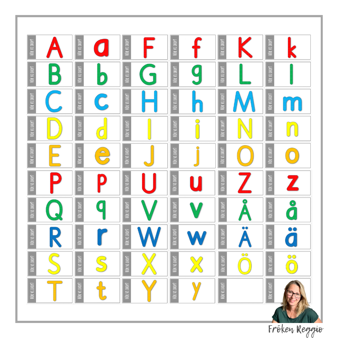 Kort för att fram för allt användas till den kooperativa rutinen ”Hör vi ihop” eller som ett Memoryspel. Para ihop versal och gemen i alfabetet.