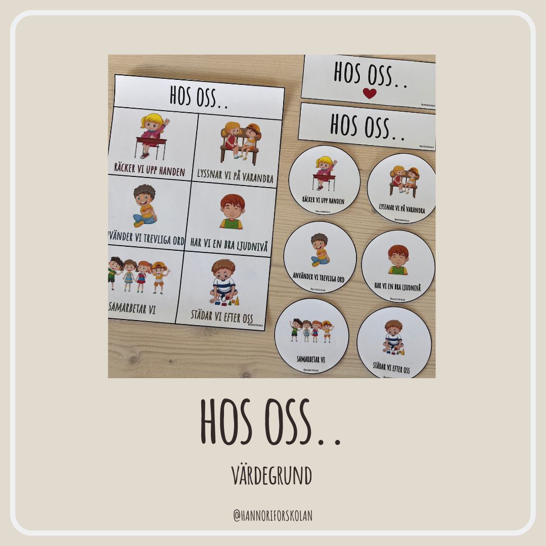 Hos oss – i vår miljö finns materialet uppsatt där barnen dagligen passerar. Materialet består av två olika designer, välj det som passar er bäst!