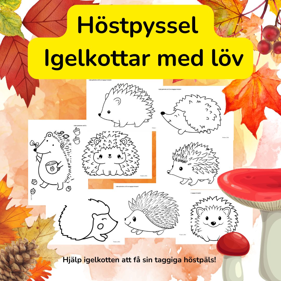 Ett kreativt och naturinspirerat höstmaterial med 8 olika igelkottsmotiv!