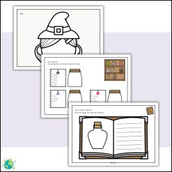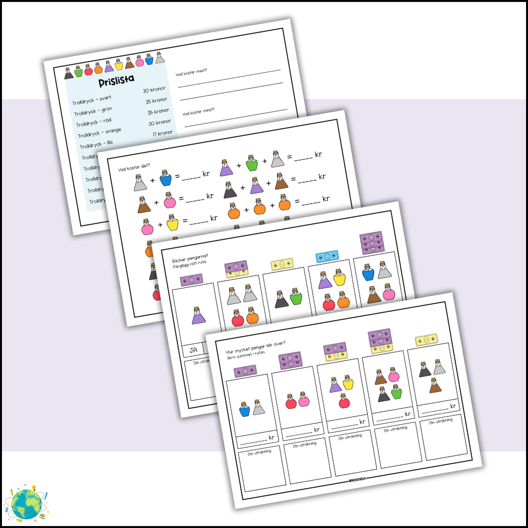I häxbutiken arbetar eleverna med blandade uppgifter i matematik och svenska.