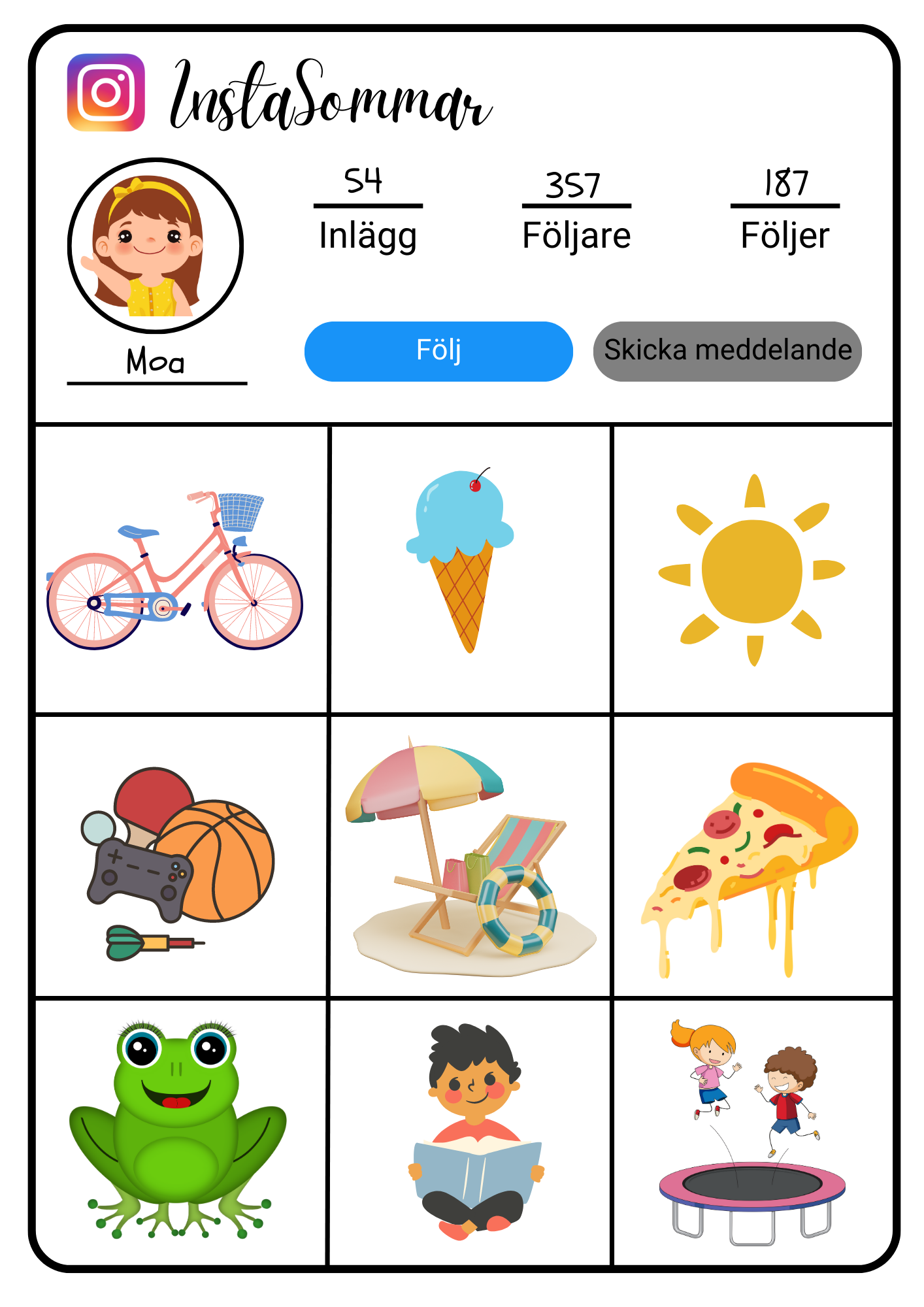 InstaSommar, två versioner- en med enbart en bild och en med 9 stycken små. Välj den som passar era elever bäst eller låt de göra båda.