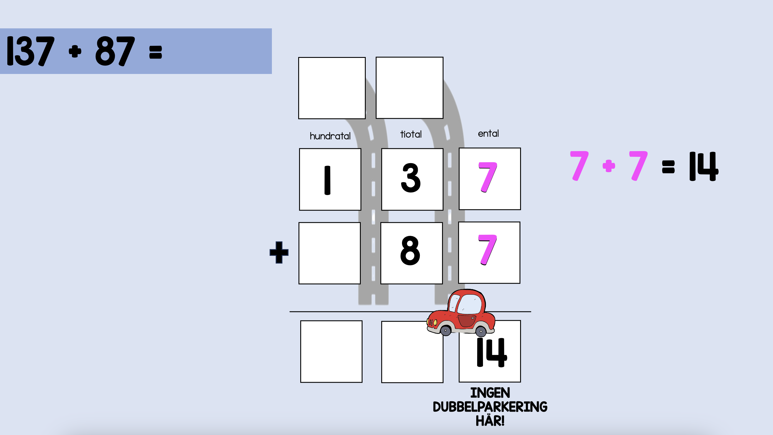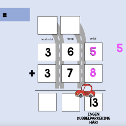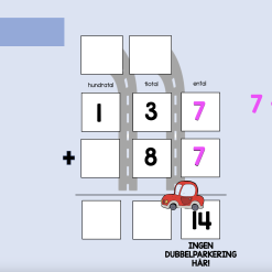 Vi tränar på att man inte får dubbelparkera (två siffror i en ruta) utan sifferbilen kommer fram då och kör iväg ena talsorten.
