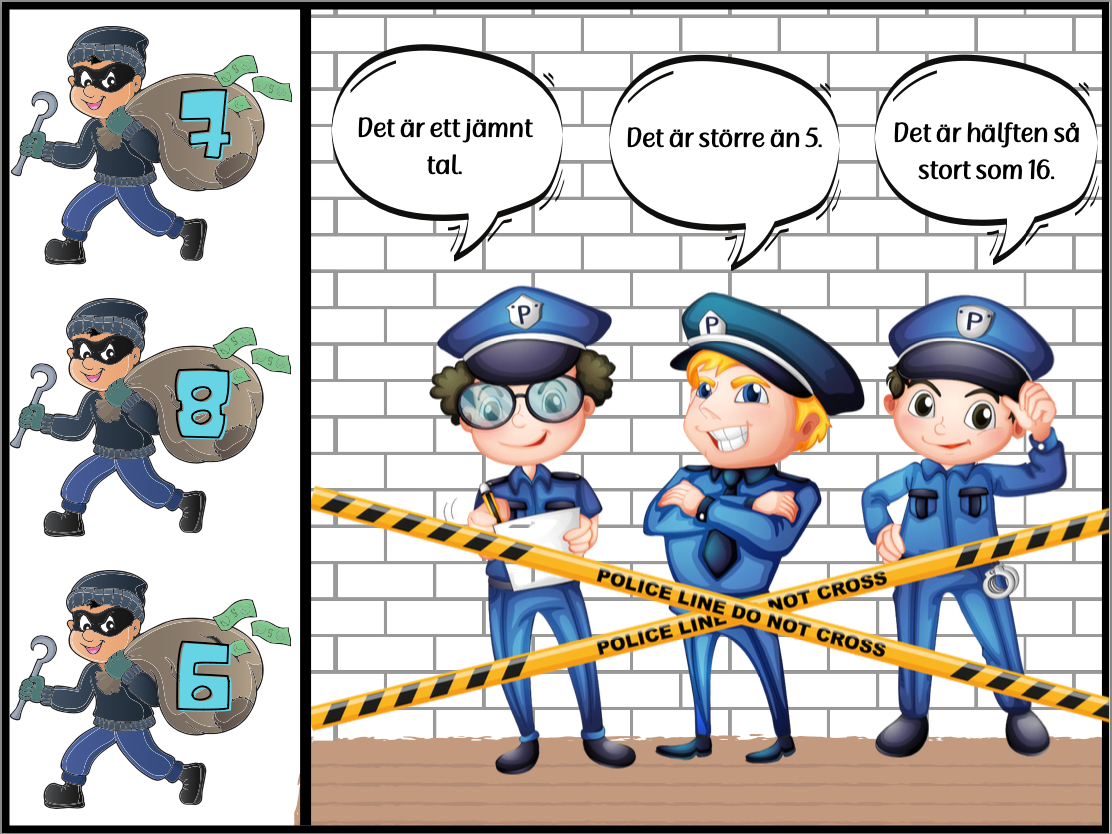 Interaktivt spel där eleverna ska hjälpa polisen att hitta tjuven. Genom att klura ut ledtrådarna kommer de närmare och närmare tjuven.
