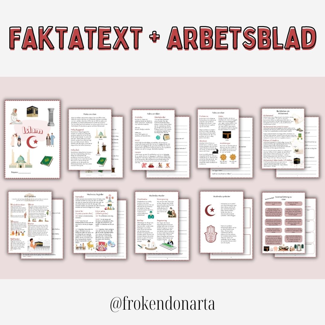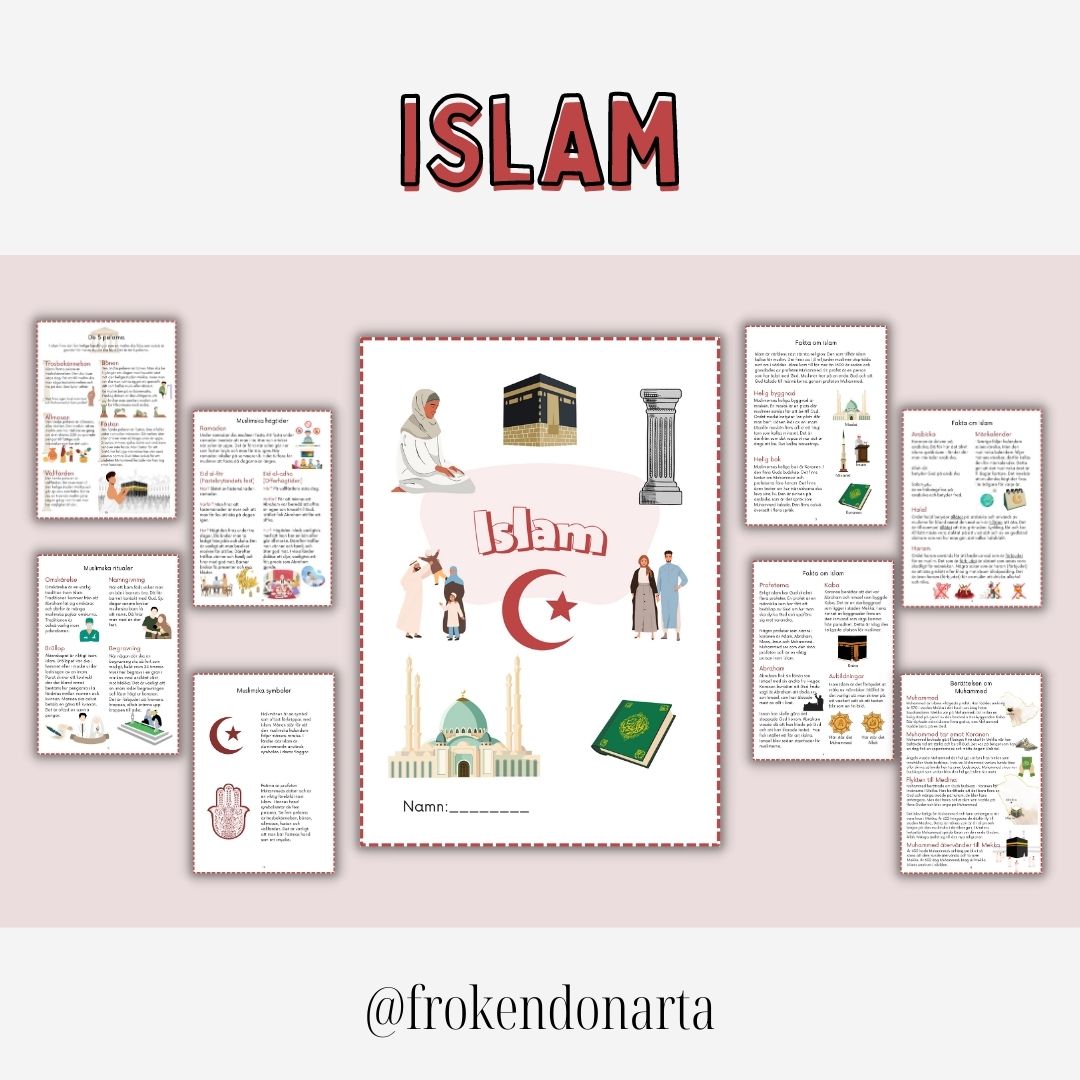 Detta är ett texthäfte som behandlar alla grunderna i islam. Häftet innehåller 8 sidor med fakta om islam högtider, ritualer, symboler, viktiga personer och viktiga platser. Efter varje sida kommer en ny sida med frågor till texten. Det vill säga 8 sidor med frågor till texten. I slutet finns även en sammanfattning om islam samt begreppskort som eleverna kan fylla i.