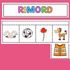 Eleverna parar ihop ord som rimmar och klistrar sen fast rimmen på ett papper.