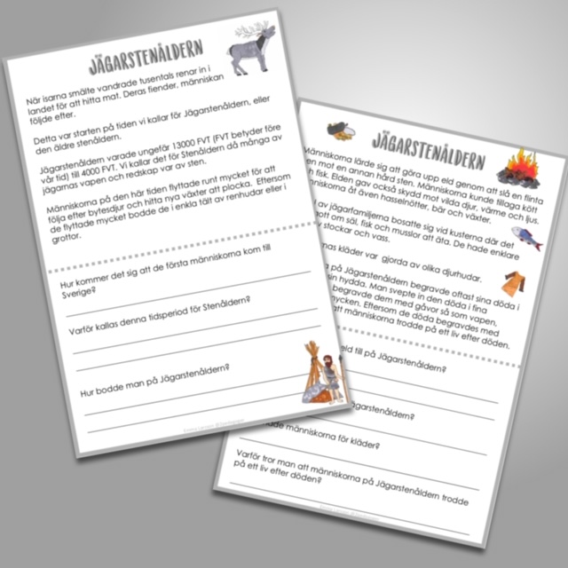 - En läsförståelse om jägarstenåldern på 2 sidor.